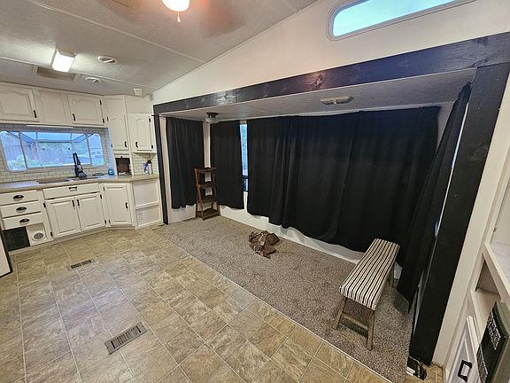 Cozy and clean studio trailer available for immediate move-in! This comfortable space has everything you need and is located in a peaceful gated community with walking access to a beautiful private lake.