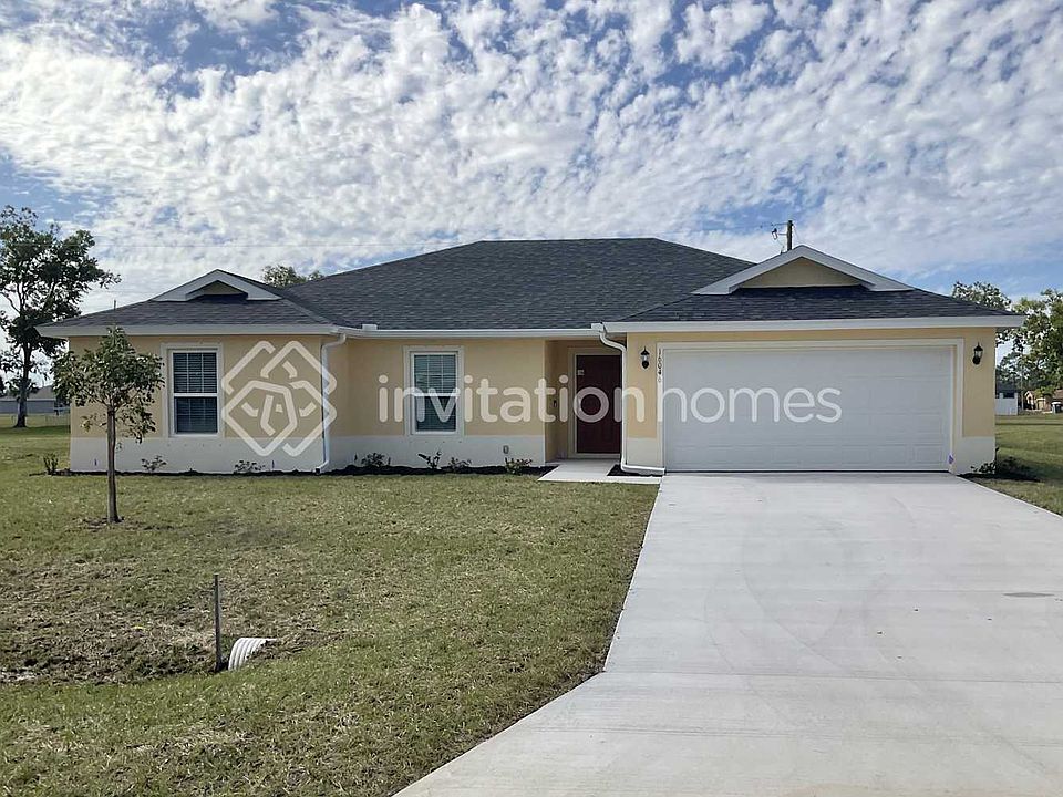 Home Features and Amenities: Air Conditioning, Garage, Kitchen Island, Long Lease Terms, Luxury Vinyl Plank, Open Floorplan, Patio, Pet Friendly, Primary Bedroom on Main, Recessed Lighting, Single Story House, Smart Home, Stainless Steel Appliances, Walk in Closet, W/D Hookups, and professionally managed by Invitation Homes.