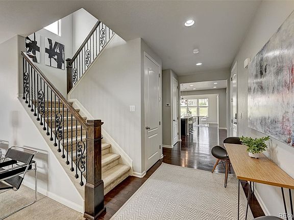 This beautiful south-west facing two-story single-family home is ideally located in the highly sought-after Anthems Highlands community. Featuring 5 bedrooms, 4 baths, a spacious loft, gourmet kitchen, eat-in breakfast bar, 5 piece master bath , huge walk-in master closet, washer & dryer that are just a year old and a fully finished basement, this well maintained Steinbeck plan home offers the best in luxury living. This home boasts of many splendid upgrades throughout the home including Granite countertops, large kitchen island, 42" cabinets, walk-in pantry, stainless steel appliances, a cozy gas fireplace in the family room, hardwood flooring, and many more. The spacious loft in the upper level also offers amazing mountain views!! Fully finished basement welcomes you with its 9-foot ceilings, wet bar, 7.2 channel home-theater pre-wiring, one bedroom and a full bath. This gorgeous home backs to the community park making it perfect for enjoying Colorado evenings from your backyard!! Community Rec center is a hub of fun and activity with its basketball courts, tennis courts, full-size gym, swimming pools, water slides, party halls and child care(paid separately). Anthem Highlands has 20+ parks and over 48 miles of trails within and around the neighborhood. The neighborhood also features a K-8 STEM public school and a K-12 charter school and many other schools are also located pretty close to this community.