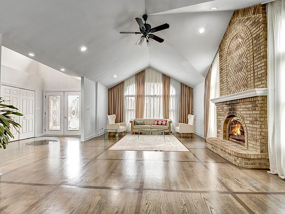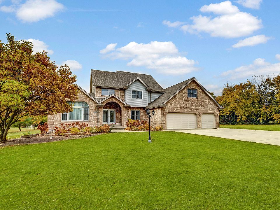 An unconfining design adds a remarkable sense of space to this custom-designed 2-story home, perfectly nestled on a picturesque 1.38-acre lot. Quality built by its previous owner-a custom home builder-this residence offers an open layout ideal for both entertaining and everyday living. The main level features soaring vaulted ceilings, beautifully refinished hardwood floors in modern hues, and a grand 2-story foyer opening to a spacious great room with fireplace. The bright, oversized eat-in kitchen stands out with a turret-style vaulted ceiling, skylights, custom lighting, an abundance of French gray-tinted cabinetry, quality granite countertops, a massive breakfast island, newer stainless steel appliances installed in 2021, and large windows filling the space with natural light. The main-level master suite is a serene retreat with a cozy second fireplace, double doors to a private deck, and a spa-inspired bath showcasing a granite double-sink vanity, corner tub with granite decking, and a matching granite shower with body-spray system, plus a walk-in closet with custom organizers. A private den/office behind French doors completes the main level. Upstairs offers a loft area and three spacious bedrooms with tray or vaulted ceilings, along with a richly appointed full bath featuring a granite double vanity and matching tub surround. The fully finished look-out basement adds even more space, including a recreation room with newer flooring and a third fireplace, an exercise room, a custom-crafted full bath, and a large storage area, with convenient access from both the interior and the garage. Step outside to the expansive deck (needs tlc) overlooking a massive, tree-lined backyard offering peace, privacy, and a natural setting rarely found. The home also features a newer roof (2021). Come see this truly distinctive home, combining timeless craftsmanship, stylish comfort, and recent modern touches.