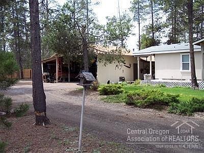 Nice 3 bed 2 bath home located in a beautiful setting amongst the pine trees on 1 acre. This home has skylights bringing lots of natural sunlight. Open living, master separate from bedrooms, big covered front deck, woodstove, sprinkler system, RV parking & hookups, extra bonus room detached from house w/woodstove, great for entertaining or storage, 2 car carport that can easily be enclosed, covered storage for wood. Property is close to town, schools, Mt. Bachelor & High lakes. Lots of Wildlife to watch!