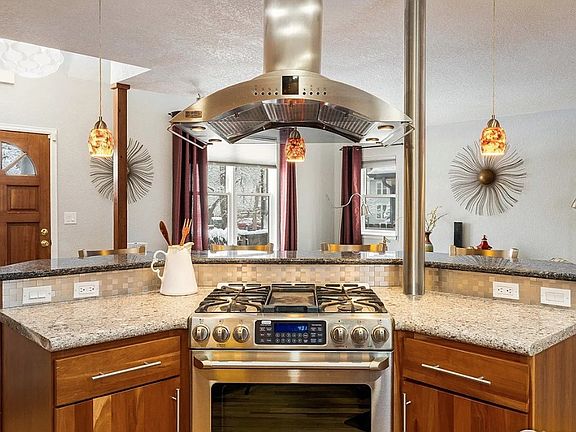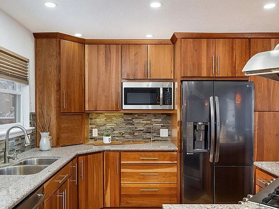 - The recently remodeled kitchen features sleek new cabinets, quartz countertops, and stainless-steel appliances, including a vent-out cooking fan.