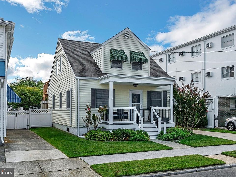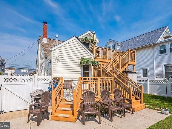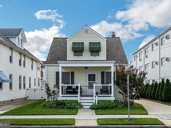Immaculate 3/4 bedroom beach house nestled in popular North Wildwood is just 2 blocks from the beach and minutes from Morey's Water Parks & Piers, Mariner’s Pier, Surfside Pier, and one of the country’s last great seaside promenades. The world-renown Wildwood boardwalk known as "2 Miles of Smiles." Maintenance free with new roof, rare 4 zoned central air installed 2019-2020, newer windows, tankless hot water heater, and huge fenced-in back yard with oversized shed & outdoor shower. Step onto the covered front porch and into the sundrenched Livingroom , complete with vinyl plank flooring, neutral paint, and expanded pull-out sofa. The bright kitchen boasts gleaming Pergo floors, gas stove, fridge with icemaker, & leads to the laundry room with pantry and extra storage. The 2 generous first floor bedrooms share a tiled hall bath. The second floor has a separate entrance and can be used as an in-law suite or potential duplex. There is a bedroom with full remodeled bathroom, a living room area that can be used as 4th bedroom, water hook-up and gas line for kitchenette. Plenty of driveway parking and street parking as well! Perfect vacation home and/or short-term rental!