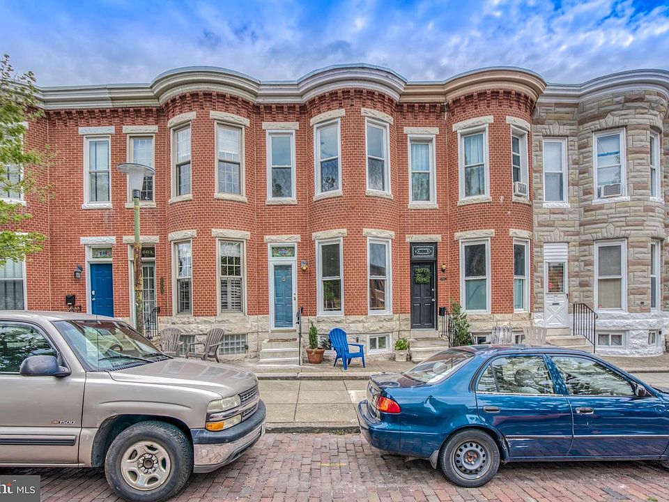 Welcome to Belt Street, one of the sweetest streets in the much coveted Riverside Park.You'll love this bow front townhome with original wood floors, exposed brick, decorative fireplace, tall ceilings, huge white kitchen and rear deck for your end of summer bbqs. Second floor has a gorgeous master suite with soaring ceilings, great closet space and terrific built-in window seat. Rear bedroom is also spacious with great closets and a rear deck to take in the stars! The second floor full bathroom is newly updated with marble vanity, gorgeous tile floor and large tub shower combination. Basement is finished with third bedroom or media room, updated full bathroom and bonus rear storage room with laundry. Recent improvements include all new windows 2019, replacement of water heater, full roof replacement, several doors replaced, new flooring on the 2nd floor and so much more, Don't miss the rear parking pad as the perfect final touch!