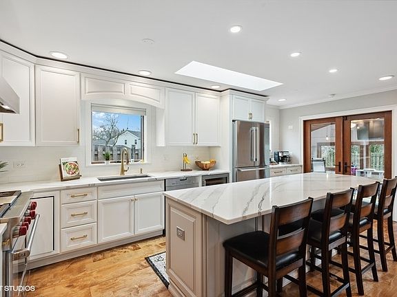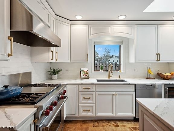 Absolutely MOVE-IN ready! Homes like this don't come around often! This beautifully updated 4BR/3BA ranch has the total WOW factor! NEW kitchen with state-of-the-art appliances, (Wolf, Bosch, Miele, Sub-Zero), gorgeous gold accents, Cambria Quartz counters, oversized island, can lighting, skylight, and a clear view to the 4-season sunroom/playroom! Separate family room with cozy fireplace! Formal dining room and living room! NEW mudroom features, tons of cabinets, front-loading washer/driyer, cubbies, hooks! Remodeled basement with office area, full bath, fitness area! Fenced Yard! NEW ROOF! Sprinkler system! Whole House Generator! Epoxy Garage Floors!