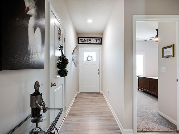 Step into effortless living with this beautiful 2023-built home, all on one level and designed for both comfort and connection. With 4 spacious bedrooms and 2 baths, it offers room to spread out while still feeling warm and inviting. The oversized 2-car garage includes a safe room and has been fully insulated and sheetrocked for function and finish. Every detail has been elevated: plantation blinds, upgraded lighting, custom shower doors, an extended patio for evenings outdoors, and a fenced backyard with irrigation well and underground sprinklers to keep the lawn lush without the high water bill. All appliances are included, so you can move right in and start enjoying the lifestyle this neighborhood is known for. Spend summers at the community pool, stroll the walking paths, or take your golf cart out to Sand Creek Station Golf Course right next door. View the tee box of hole number 16 right from your backyard. Whether you’re gathering with friends, relaxing in your backyard, or exploring the neighborhood, this home offers a perfect blend of modern design and resort-style living.