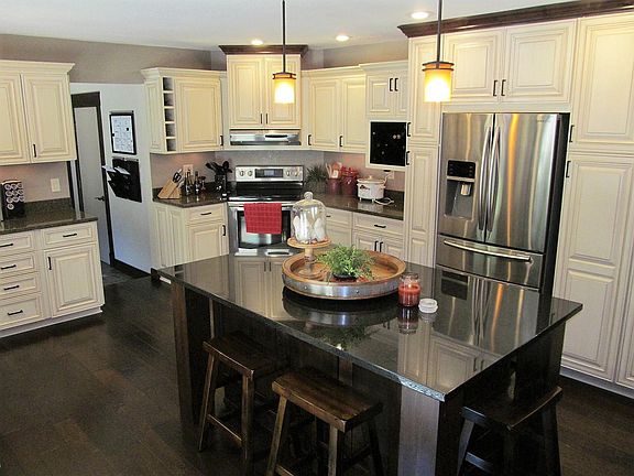 Spectacular ranch home located in peaceful Hickory Hills addition. The owners have made numerous improvements that are sure to be a delight. From the moment you walk in you will appreciate the attention to detail! Large open concept soft close kitchen cabinets, granite kitchen counter tops, beautiful island. It is the perfect space the lends itself well for entertaining. From the kitchen step out onto the patio and outdoor kitchen area that is nicely landscaped complete with water feature and fire pit. In the master suite you will enjoy a large bedroom and a master bathroom the is sure to impress, complete with heated tile floors. The additional bedrooms are ample sized rooms. You will also enjoy a three car attached garage and a exercise room. This home is truly a must see in a excellent location! Furnace and Central Air new in 2018.