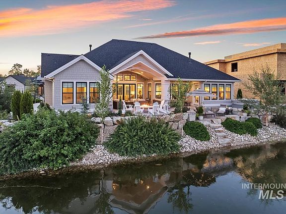 If you’re looking for high end luxury on a premier pond lot, with direct access to the Greenbelt and Boise River out your front door…this is the one! This beautiful single story home is loaded with high end finishes throughout. As you enter the door, you’re greeted with floor to ceiling windows overlooking the pond. The great room features a stone fireplace that sits across the open concept chef’s kitchen with Thermador appliances and a massive quartz countertop island. Head to the master suite to find another fireplace and more gorgeous pond views. The spa-like master bath has a large walk-in tiled shower with dual shower heads and a walk-in closet with walls of built-in storage. You’ll also find a home office with a custom built-in desk and cabinets. Out back is a large covered patio along with a plumbed in gas fire pit, hot tub, stone sitting area, and access to the pond. Don’t forget to enjoy your oversized 3 car garage with fully finished epoxy flooring, built in workbench, and ceiling storage racks.