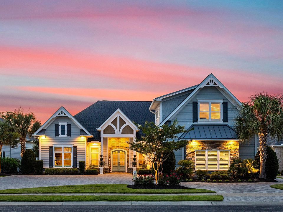 Discover the epitome of lakefront luxury and ultimate convenience at 1605 E Island Dr, a stunning luxury residence nestled in the prestigious Seabrook Plantation community of North Myrtle Beach. Ideally positioned between the Atlantic Ocean and the Intracoastal Waterway, this home offers an unparalleled coastal lifestyle. Enjoy the perfect blend of tranquility and vibrant city life, just a quick golf cart ride to the beach a short walk to the Coastal North Shopping Center, and close to the excitement and energy of the Grand Strand. Designed for energy efficiency and supreme comfort, this four-bedroom, three-and-a-half-bath home boasts an open floor plan perfect for entertaining. The gourmet kitchen is a chef's dream, featuring stainless steel Thermador appliances, underlighting on all soft-close cabinetry, an oversized island with two cooler drawers and extensive storage, a breakfast nook, and a subway tile backsplash. The REME-HALO air purification system ensures a clean and healthy indoor environment. The outdoor living spaces are equally impressive, with a heated and cooled porch that includes a fireplace, a gas brick pizza oven, breathtaking lake views and magical sunsets. Retractable built-in shades for windows and doors, along with a Sonos music system, make this the ideal spot for year-round relaxation and entertainment. The two-car garage provides ample parking and includes additional space for a golf cart along with a golf cart door, a water softener, sink and storage shelving. Additional highlights of this home include a mahogany front door, a comprehensive security system, movie room, and a bonus room/gym for your fitness needs. Residents of Seabrook Plantation enjoy an array of exclusive amenities, including gated privacy, a resort-style pool, a clubhouse, boat and RV storage, community green spaces, and beautiful coastal lakes. Seabrook Plantation offers a unique oasis with some of the most beautiful terrains in the region, providing an ideal setting for this luxury home. Enjoy all the exclusive amenities and the convenience of being close to both the natural beauty and the vibrant life of North Myrtle Beach. This exquisite home at 1605 E Island Dr is designed to offer the ultimate in comfort, functionality, and design, making it the perfect place to enjoy the best of coastal living.