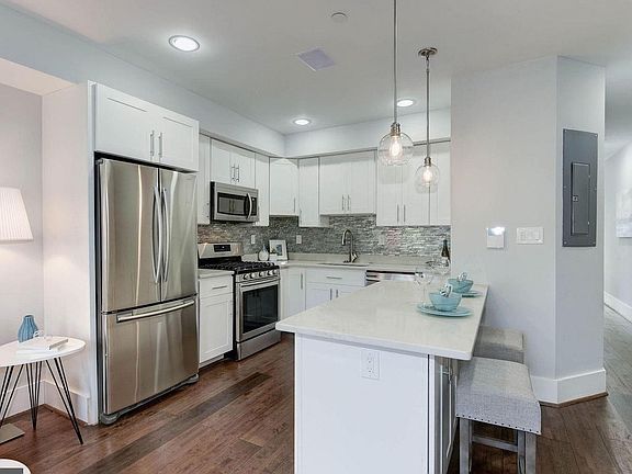 SCHEDULE A SHOWING ONLINE AT: showmojo.com/lh/97084c308a Bright and casually elegant. This unit is fortified with crafted Hdwd Flrs, an airy open Living Room and a Gourmet Kitchen well-appointed w/ Stainless Stl Appliances, ample storage & a Seating Bar. The hall hosts a half BA, laundry closet & the exit to your entertaining rear patio. The Master Suite offers a walk-in closet and a Spa-Bath w/ floating vanity and soaking tub. *Water included **Optional furniture: couch, barstools, and patio furniture*