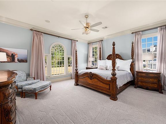 The language of luxury speaks thoroughly throughout this splendid Southern-styled mansion w/its bayou-front, acre-plus lot & prime location at Tennyson Oaks' entrance. Exceptional renovated interior w/ 6021 sq. ft. of living area, 5 BRs, 5 full baths/2 half baths offers 1st class appointments, upscale design & multitude of recent updates. Floor plan has every imaginable formal/informal room, striking library lined in walnut w/ special Kerns & Wilcheck fireplace mantel, immense downstairs owners' suite w/ NEW bath & dbl. walk-in closets + 1000 sq. ft. theatre room w/gym/craft area upstairs. Covered porches/patios/balconies grace front & back of this architectural beauty. The 3rd floor "captain's walk" offers views for miles/bird-watching/brilliant sunsets. Grand dining room/upscale kitchen w/Viking range/ovens/light-filled breakfast room. 4 newly decorated BRs w/en-suite baths and central living area upstairs w/ French doors to balcony. 4-car garage +plenty of paved parking!