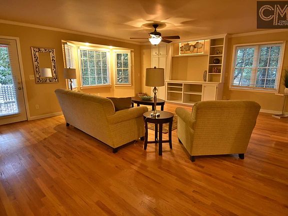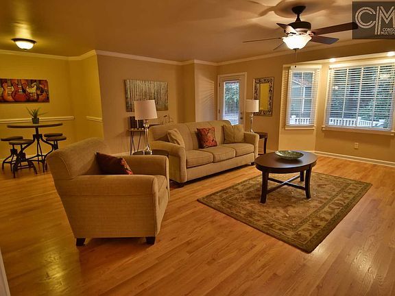 LOCATION, UPDATES, & Separate BONUS/FLEX suite! Zoned for Satchel Ford & AC Flora schools, this CUSTOM in town home is close to downtown entertainment & Forest Acres Shopping. Features include: HARDWOODS, FORMALS (LR+DR), DEN, BUILTINS, & GRANITE/GAS/STAINLESS KIT w/TILED backsplash. One guest bedroom down; XL Master w/ DUAL closets+ En suite bath+ Dressing area, Beds 3/4 UP. Attached 800 sqft/5th bed Bonus on Main Level w/private entrance offers HARDWOODS+ FIREPLACE+ Mini kitchen! Outdoor space offers LG DECK, Private Drive on quiet street. FULL appliance package- (washer/dryer/fridge) + SHED w/ electric, HOME WARRANTY included! Sqft approx; buyer to verify info.
