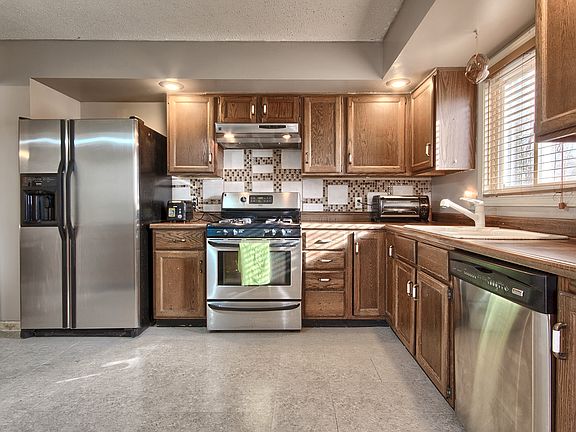 What a find as this home features a walk out lower level, five bedrooms, and three full baths. The upper level is a great place for formal entertaining. Nice sized kitchen, stainless appliances and a gas stove. Three bedrooms on the upper level along with the two full baths. An entire wall of brick with the wood burning fireplace is a focal point in the lower level family room. Convenient wet bar plus sliding glass doors lead to the back deck. Nice sized flex room to fit your families needs. Two bedrooms on the lower level with a third full bath and laundry room. Stone on front with newer vinyl siding, newer windows along with HVAC new in 2004. Devonshire Lake just across the street, paths and lake privileges for fishing. ENJOY!