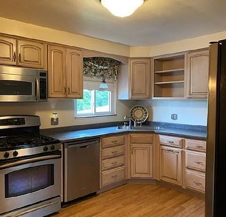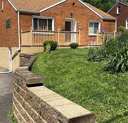 3 Bedroom 2 Bath Brick Ranch Living Room/Dining Room combined w/Fireplace(carpet & ceramic tile) Full Size Kitchen w/two pantries (wood flooring) Master Bedroom includes Double and Walk-In Closet (carpet) w/Full Bath (laminate), 2 additional bedrooms split by Full Bath (ceramic tile) Front Deck, Central air, Forced Heat, So much potential to finish a full size Attic and a Basement that leads out to large sized Driveway, Double Lot Yard w/Full Size Shed, Plenty of space ! Great neighborhood for walking & community pool nearby !