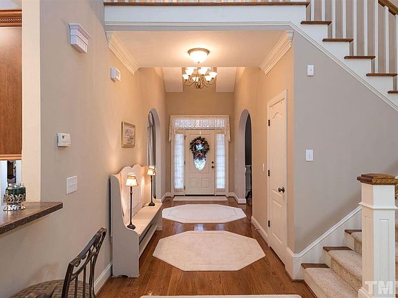 Stunning home on almost an acre with quiet country feel, on a cul-de-sac. Enjoy the view of the farm and 1800's era farmhouse to the rear of the property. It's all in the details - coffered ceiling and wainscoting in the formal dining, built in hall tree, crown throughout, tons of storage with huge closets. Huge detached workshop with built ins and loft area. Shopping/restaurants in Fuquay, peaceful commute from RTP and Raleigh. See 3D and virtual tour in links!
