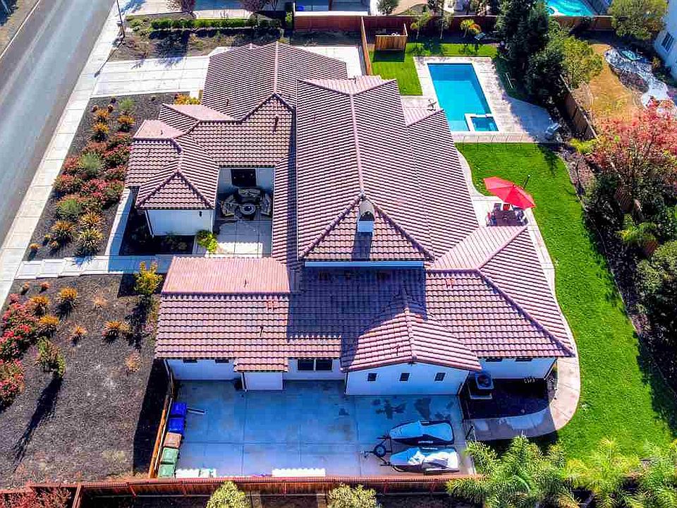 Stunning one of kind estate with all the bells and whistles! Large single story with 5 bedrooms plus den/office. Huge open and bright kitchen with quartz counters, large island, spacious dining area, large open and bright Great Room with vaulted ceilings, large windows allowing tons of natural light, electronic controlled custom window coverings, plantation shutters. All baths quartz counters, beautiful master suite w/access to patio area and yard, fabulous spa like bath and huge walk in closet. Jr. Master with own entrance & full bath. Large covered (Loggia) patio area with wood ceiling and fireplace to enjoy your yard all year round! Huge 20K+ sq. ft lot professionally landscaped with pool/spa, paved side access for boat/RV parking, timer controlled landscape lighting, 3 car gar and ample guest parking (6 cars)on the extended driveway, ADT surround cameras. Also guest suite with own entrance, full bath and plumbed for kitchenette. Assoc Docs list of some of amazing features!