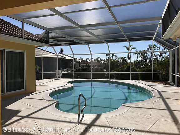 Spacious ANNUAL RENTAL 4 bedroom pool home in Estates - Marco Island! - Offered for a full year/12 month term at rate listed. Wow, updated stone top kitchen makes living joyful in this sunny south facing home. Everything all on one ground floor - NO STAIRS! Large open rooms open to pool and lanai - living, family and master bedroom. Furnished and had been offered as vacation rental home in Marco's most prestigous neighborhood. Spacious corner lot leaves green open space to neighboring homes. Dual a/c systems, large garage. Owner asking first month, last month, and security deposit.com Renter pays electric, water, cable, internet, pool. Owner pays lawn (RLNE4332980)