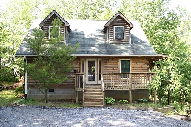 The cabin in the woods that you have always dreamed of. This Blue Ridge Log Cabin is nestled on an acre of land in the charming community of Saluda NC. Long range view of Mt. Pisgah and Cold Mountain. No long winding dirt roads to this property. Both private and convenient. Three miles from downtown Saluda and 10 from down town Hendersonville. Both bedrooms with en-suites. Enjoy the view from the covered porch or from the great room. Potential expansion, with 3 bedroom septic system. Click the video icon below the picture for an interactive tour.