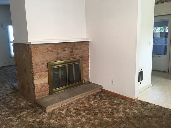 Affordable 1950's rambler in fantastic central location near schools, park, and downtown. Cute 3 bedroom, 1.5 bath home offering many possibilities. Large light filled windows in main living room with vaulted ceilings and a beautiful brick double sided fireplace. Hardwood is thought to be underneath the carpet in bedrooms and living areas. Laundry space off kitchen. Nice-sized private backyard with garden shed and access from back ally. Attached single stall carport and garage with good amount of parking in back of home.