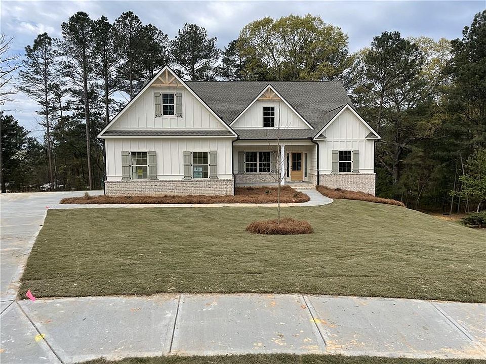 New Construction! The Avondale -This spacious ranch home features an entry foyer, study, and separate dining room w/ coffered ceiling. The kitchen has quartz countertops, farm sink, under cabinet lighting, painted cabinets and upgraded vent hood. The breakfast area opens to the vaulted family room with brick fireplace and cedar mantle. The master suite is near the laundry room w/ tray ceiling, a large walk-in closet, a private bath, separate vanities, soaking tub and separate tiled shower. On the other side of this home are two secondary bedrooms and a full bath. Beautiful trim, Hardwood and tile floors. Oversized bonus or bedroom 4 with full bath and walk in closet found upstairs. Covered back deck for entertaining plus full unfinished basement! Gorgeous lake community convenient to Loganville. This home is under construction - completion in February 2023.