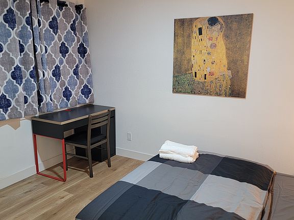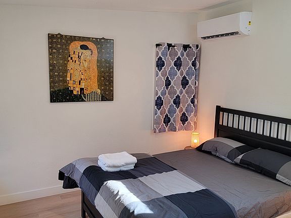 Full-size fridgeRoom-darkening shadesCleaning productsSmoke detectorCarbon monoxide detectorFull-size ironing boardFree street curbside parking