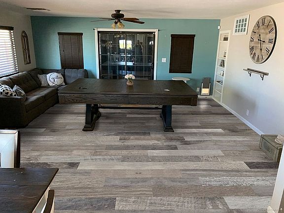 UPDATED ON A DOUBLE LOT!! Remodeled in 2012 w/ Granite, Corian, and Travertine! Wood laminate flooring in LR blends into well lit DR w/Tile floor. Kitchen boasts Corian counters, Tile floors, stainless/black appliances, and loads of cabinet space. Long and wide Master brm has walk-in closet large enough for a washer/dryer combo unit! Sooo convenient!! Master bath: Granite counters, Travertine floor, and a very cool fully tiled shower! Hall bathroom also w/ Corian counters/backsplash, and tiled floors. Enclosed patio for extra storage. Work shop w/electric can be converted back into garage if desired. Hot tub included! Extra wide front patio. Roof replaced 5 yrs ago. Stay cool here w/ AC!! Solar panels are leased and bring the electric bills down to an average of $80/mo during the hot summers! Carport w/ R.V. Parking keeps the autos out of the heat as well. Masonry walls in rear. Home inspection and termite report already complete! NICE PICK!! HAS SOME CHARACTER TO IT!!