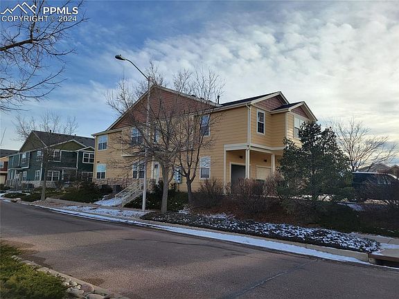 Immaculate open concept 2 bedroom 2 bath condo with attached 1 car garage. Great condition and shows like a model. Pikes Peak view from deck & living room. Barn door between primary bedroom & bathroom. LVP flooring throughout- Vaulted ceiling in main living areas- Lots of light & sunshine. One level living but there is a flight of stairs from the entry & garage to the living area- Great complex with community playground. Easy access to both downtown or Powers corridor.