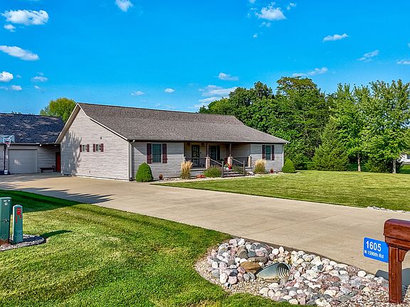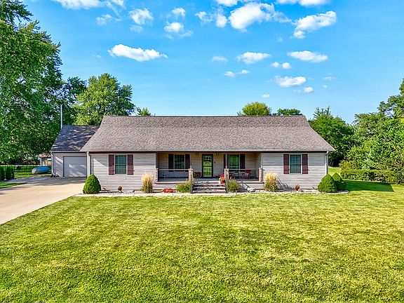 Perfection at its finest ~ Meticulously maintained, cared for and updated ~ This 4 bed, 2 1/2 bath ranch has all your heart desires ~ The oversized concrete front porch with stamped concrete steps will take your breath away ~ Open concept living room, dining room and kitchen with vaulted ceilings and gleaming hardwood floors ~ Custom kitchen with island, (soft close doors and drawers) with quartz countertops; all kitchen aid appliances stay ~ Fantastic split floor plan ~ The master suite offers a private bedroom, office area and a master bathroom you'd love to call your own; custom cabinetry, jetted tub, beautiful tiled shower and walk in closet ~ Two additional generous sized bedrooms ~ Main floor full bath with custom cabinetry and quartz counter tops ~ Main floor laundry with ample cabinets, sink and folding area ~ The full basement offers an enormous recreation room, additional bedroom; with egress window, 1/2 bath; with plenty of room to add a tub or shower, storage room and mechanical room ~ 2 1/2 car detached heated garage has a wood burning furnace, wall mounted propane heater, pull down stairs for attic access with additional storage and screened in patio off the back ~ The back yard is simply beautiful with a concrete patio, built in fire pit with seating, fruit trees; apple and cherry, a vegetable garden, a chicken coop (it's now used as a shed, but could easily be converted back) ~ Also includes a water circulation pump, power outage backup system - 200 amp service ~ All of this PLUS 1.75 professionally landscaped acres ~ Truly a must see