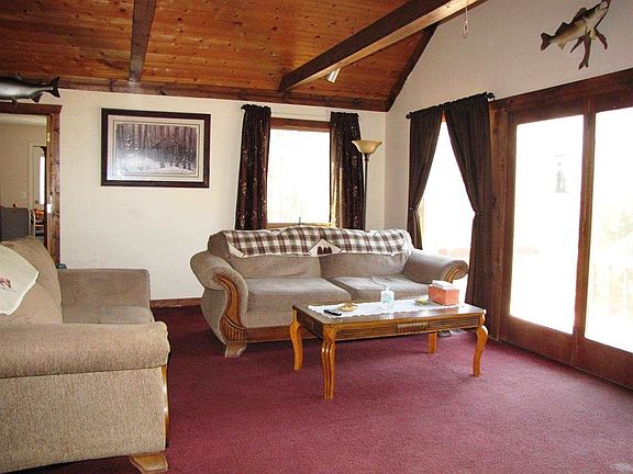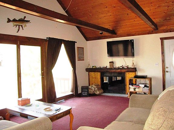 If you're looking for an affordable year round or vacation home, look no further! This home is tucked away on over 3 acres of rolling wooded land where the wildlife is plenty! Currently used as a two bedroom home, the loft does offer the opportunity for an additional sleeping area or den/office. The living room has great character offering vaulted ceilings, fireplace and sliders to the large deck, GREAT VIEWS! Large one car garage offers a walled room to use as workshop etc.
