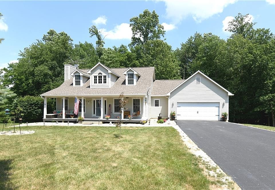 You will love the quaint setting of this Cape Cod home with pole barn/garage and .83 of an acre. The home boasts 4 Bedrooms and 3.5 baths, w/first floor Master Bedroom and ensuite Bathroom. Upstairs has 2 BR's and a full bath. Kitchen has a nice deck with space for grilling and outdoor Dining. Basement has just been updated with new flooring and is a cool space for gatherings and leads to an outdoor patio space with plenty of room for entertaining and backs up to the woods. 4th BR is in Basement and is currently being used as an Office. 3rd Full Bath located in the Basement. Pole Barn/Garage has plenty of space measuring 24x30 ft. This Eco-friendly home has Geothermal Heat and Air. No HOA. Don't miss out on this move-in ready home!