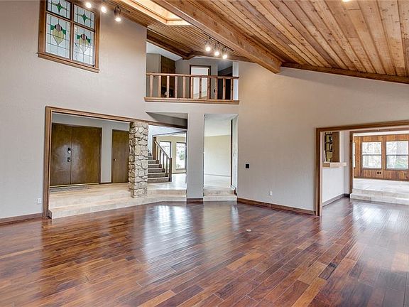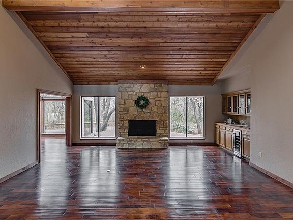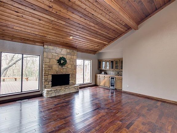 Welcome to your own wooded paradise! The open living room boasts a soaring ceiling with skylights, floor to ceiling windows, travertine tile & wood floors, a wood-burning, stone fireplace, & wet-bar with new wine refrigerator. The breakfast nook's atrium windows make it feel like you are in a tree house! The second living space offers a wall of bookshelves & more windows to enjoy over half an acre of nature. Sliding glass doors lead you to the perfect deck for entertaining. The kitchen is truly the heart of the home and connects all three rooms to the formal dining area and large entry. The spacious master suite also has sliding glass doors to the deck, two big closets, and an expansive master bath. At the top of the stairs is a bedroom with a private bath. Two more bedrooms share a jack-and-jill bath with no shortage of natural light or counter space. This home is immaculate and has brand new carpet and fresh paint. Come add your ideas & transform this into your dream home.