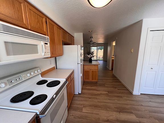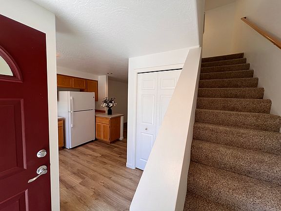 Spacious 1,142 sq. ft of pure comfort Fresh, modern look with new vinyl plank flooring and plush carpets Fresh paint throughout New updated fixtures 1.5 baths for ultimate convenience Built in 1994 - the perfect blend of charm and modern amenities Your new home comes fully equipped: In-unit washer and dryer - say goodbye to laundromats! Dishwasher and garbage disposal for easy clean-ups Refrigerator included - move right in! Cozy wall heating for those chilly nights Convenience at your doorstep: Outdoor cozy patio space Covered parking to keep your car happy Two locked outdoor storage spaces for all your extras Community perks you'll adore: Gorgeous organic community garden - grow your own fresh veggies! HOA Community that cares-Fees paid by Owner Refreshing outdoor swimming pool for summer fun With a smart layout featuring living, dining, kitchen, laundry, and half-bath downstairs, plus two large bedrooms and a double-sink full bath upstairs, this townhouse is the definition of practical comfort!! No smoking/vaping allowed. Tenant responsible for all utilities other than garbage. Six-month lease minimum. One small pet allowed.