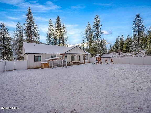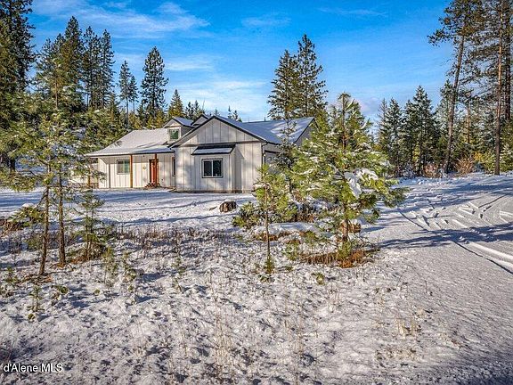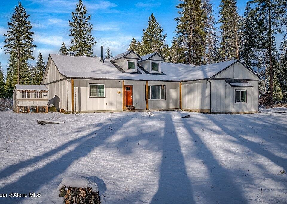 Listen to the sounds of the nearby waterfall or take in the views of Mt. Spokane as you enjoy the large covered patio on this beautiful single level home on almost 5.5 acres! This 3 bd/2 BA home has 1956 sq/ft and was built in 2021. The property is bordered by year-round Blanchard creek, has views of the lake across the road, and you can expect to see lots of deer and even moose. Inside the home, you will find a large great room, kitchen with quartz, central air, oversized walk-in shower, and functional dormers letting in so much natural light. The large 2-car garage has an oversized door to allow those tall North Idaho trucks plenty of room. Outside, you will find a fully fenced yard, custom built chicken coop, and the property has been wired with dedicated 200 AMP service for a future shop. Situated on a county-maintained road and not burdened by CCRs or an HOA, this property is truly the North Idaho dream!