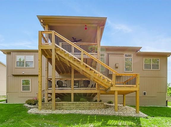 BETTER THAN NEW, OPEN CONCEPT, reverse 1.5 on PRIVATE, CUL-DE-SAC LOT!! You will LOVE the GLEAMING WOOD FLOORING throughout the main living area, SOARING CEILINGS and loads of windows for NATURAL LIGHT! Great room, kitchen and breakfast room FLOW PERFECTLY for entertaining! Don't miss the beautiful CUSTOM TILED FIREPLACE in the great room! CHEF'S KITCHEN offers HUGE ISLAND, custom cabinets, stainless appliances, GRANITE COUNTERTOPS and walk-in pantry. MAIN LEVEL MASTER SUITE features SPA-LIKE BATH w/double vanity, WALK-IN SHOWER, his/hers walk-in closets and connected to the laundry room for convenience. 2 additional SPACIOUS SECONDARY BEDROOMS w/ample closet space and second bath on this level. In the FINISHED WALK-OUT LL you will find a REC ROOM for movie nights, 4th bedroom and 3rd bath. SO MUCH STORAGE or room to expand! The fenced backyard is a SHOW STOPPER!! 2 COVERED DECKS overlook GREEN SPACE, so much PRIVACY!! Kearney schools-HURRY!!