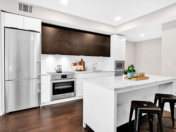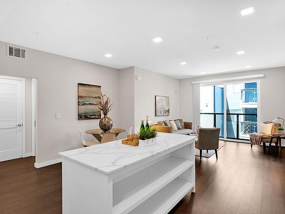 Contemporary 5th floor unit located in an almost new building in the heart of Walnut Creek with 2 parking spaces. Featuring a gorgeous kitchen, hardwood flooring, and ample natural lighting. Enter a spacious open floor plan living room/kitchen area with recessed lighting and high ceilings. The expansive kitchen is a dream for entertaining, featuring high-end stainless-steel appliances, an induction cooktop stove, and white marble countertops and island. The primary suite and second bedroom enjoy privacy from each other, located on opposite sides of the living area. Primary suite features his-and-hers closets and a pristine bathroom with a double vanity and spacious shower. The unit boasts excess storage space and in-unit washer dryer. The building has state of the art security and a chic lobby with extra space for relaxing or meeting friends. Walking distance to Walnut Creek BART and minutes from downtown and top-rated schools. Amenities Recessed private entry doors with state-of-the-art wireless electronic access system Hardwood flooring in entry, kitchen, living, dining, and hallways Carpet in all bedrooms and closets Nest thermostats with individually controlled central heat and air conditioning Hookups for a full-size stacked washer and dryer 9 ceilings in living and bedroom areas Oversized windows to maximize light and views Private patios and balconies Fiber-optic network installed in each home, offering gigabit capacity European-style kitchen with sleek cabinetry and under-cabinet lighting Stainless steel appliances including induction cooktops with integrated hood Quartz slab countertops with full-height tile backsplash Kitchen island with open storage and cantilevered quartz countertop for seating Deep single basin stainless steel sink and spray faucet Designer tile flooring Large walk-in shower featuring oversized tile wall surround with glass enclosure Top-mounted contemporary vessel sinks with chrome faucets and fixtures Modern European-style cabinetry Oversized mirrors with wall-mounted vanity light SECONDARY BATHS Designer tile flooring Tub/shower with tile surround Quartz slab countertop and backsplash with under-mount sink Chrome faucets and fixtures PROPERTY AMENITIES Clubroom and lounge with seating and work areas, TV/entertainment space with refreshment bar, and wireless internet Spacious lobby with separate room for mail and parcel lockers Roof deck with built-in barbecue, TV/entertainment area, bocce court, and dining tables Landscaped courtyard with gas fireplace and seating areas Underground gated parking with 1-2 spaces per home Individual storage lockers Bicycle storage room Electronically controlled building entrance *Trash is included in rent *Tenant pays other utilities. Tenant responsible for all utilities not included in the HOA. Water and Garbage are included
