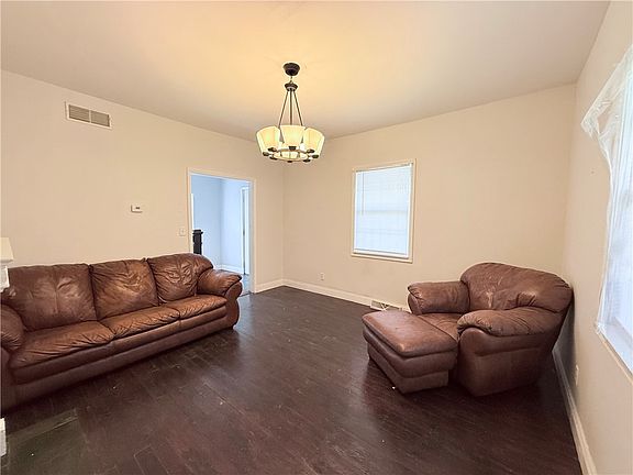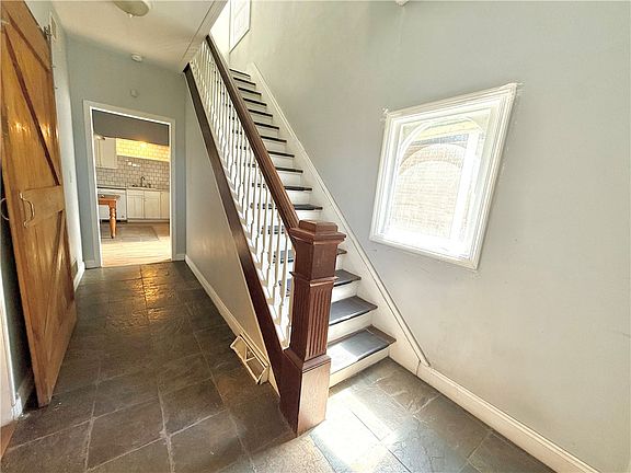 Welcome to this charming and spacious home designed for both comfort and functionality. Step inside to find a unique barn door just off the entryway, adding a touch of rustic character and privacy. The oversized living and dining rooms provide an open, airy feel—perfect for entertaining or relaxing. The heart of the home is the expansive kitchen, featuring wall-to-wall countertops and cabinetry, a center island for added prep space, a gas stove with a hood vent, and access to a delightful back porch—ideal for morning coffee or evening unwinding. Upstairs, enjoy the convenience of second-floor laundry, a full bath, and three generously sized bedrooms, each offering plenty of natural light. Throughout the home, beautifully exposed and finished original hardwood floors add warmth and timeless appeal. Additional highlights include newer windows for efficiency and comfort. This is easy, stylish living in a home that blends character with thoughtful updates.