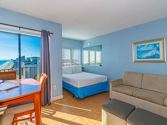 This unit sits on the 15th floor and offers a beautiful southern view of the Atlantic ocean, while overlooking the outdoor pool as well!  It will comfortably sleep four as it offers a queen bed and a queen sleeper sofa.  This condo has it all!  The oversized kitchen is a feature that you will not find at many other resorts!  Great rental history!  The Palace Resort features a host of amenities: Large oceanfront outdoor pool, outdoor whirlpools, putting green, exercise room, sauna, restaurant/lounge, free wireless internet, guest laundry facilities, attached parking garage. The Palace is just minutes from Market Common, the Boardwalk, Broadway at the Beach and the Myrtle Beach Airport.