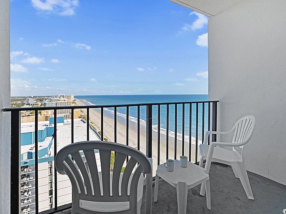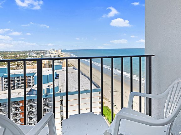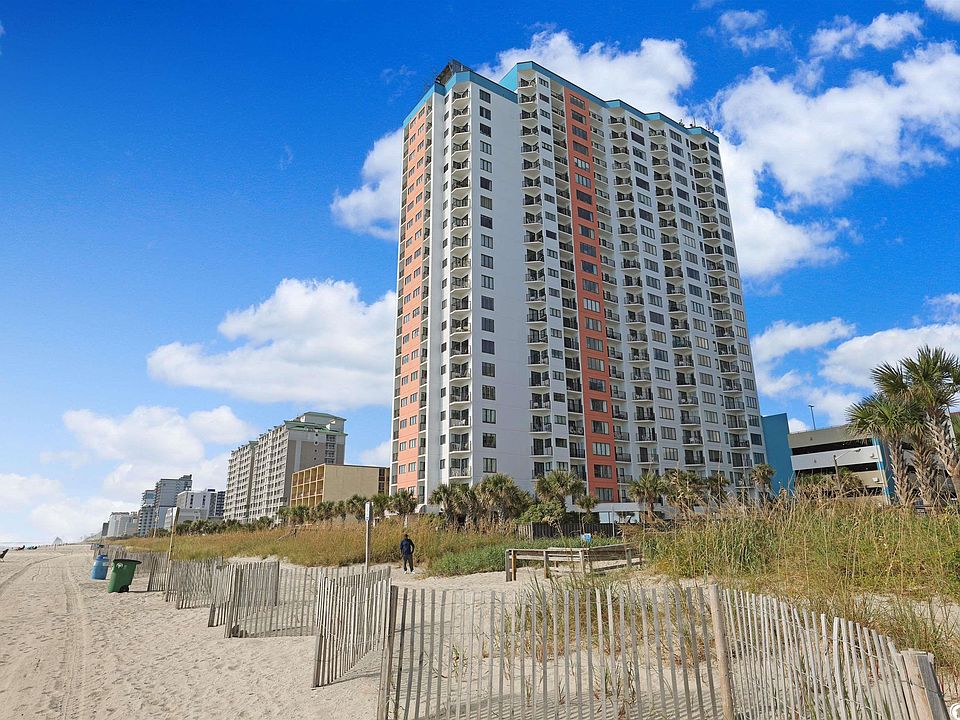 Come put your feet in the sand with this 2 bedroom 2 bath condo just steps from the beach. This impeccably maintained, stylish & fully furnished condo has a spacious & classic living/dining room combo with a door that opens to the relaxing balcony with a majestic view of the Atlantic Ocean that takes your breath away. This piece of paradise features, an abundance of natural lighting, carpet & tile flooring, and a fully equipped kitchen. The master bedroom showcases a private balcony & a French door closet, master bath includes a single sink vanity, a comfort station, and timeless tub/shower combo. This condo is completed with an additional bedroom with access to the main balcony, and a full guest bath. Palace Resort features a host of amenities that include 2 oceanfront pools, indoor and outdoor whirlpools, The Palace Lounge, The Palace Restaurant, Castle Meeting Room, putting green, exercise room, sauna, steam room, and game room. This condo affords you easy access to the beach and golfing along with all of the other activities and happenings in Myrtle Beach including fun eateries, award winning off-Broadway shows, public fishing piers, and intriguing shopping adventures along the Grand Strand. Conveniently located to your everyday needs, including grocery stores, banks, post offices, medical centers, doctors’ offices, and pharmacies. Check out ourstate of the art 3-D Virtual Tour.