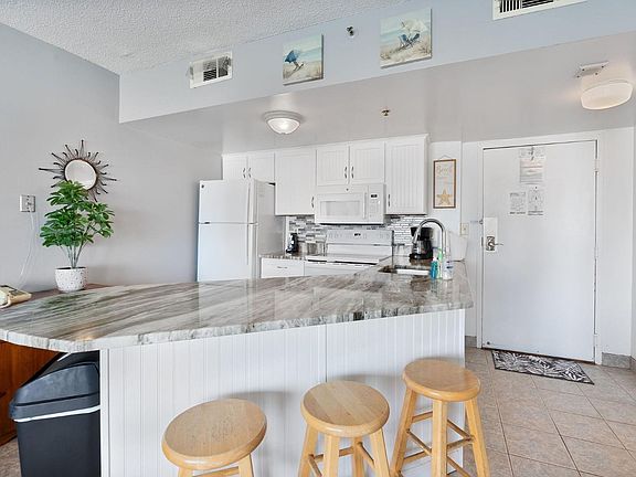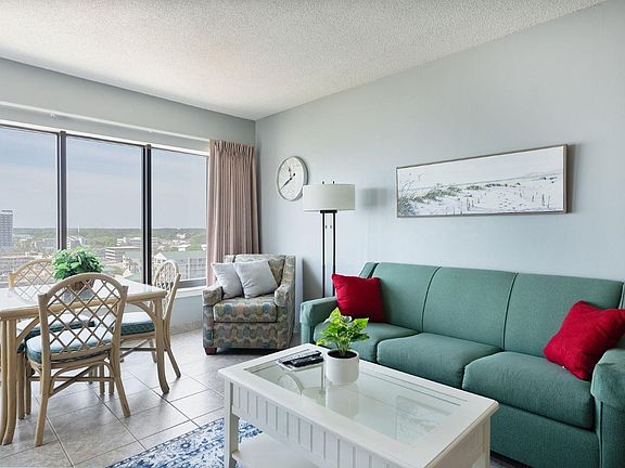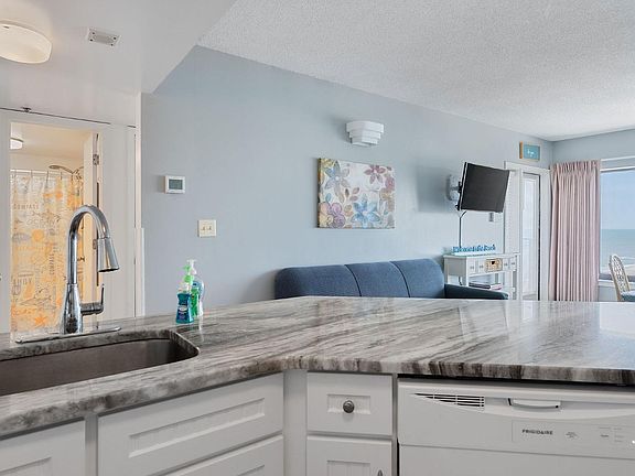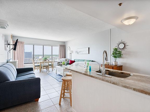 Welcome to The Palace, where luxury meets the shoreline in the heart of Myrtle Beach! Nestled along the pristine coastline, this 1-bedroom, 1-bathroom oceanview condo offers breathtaking panoramic views of the Atlantic Ocean from both the bedroom and living room. Tiled flooring flows seamlessly throughout the space, complementing the fully equipped kitchen featuring all-new white appliances and stunning quartz countertops.  Beyond your private oasis, The Palace boasts a wealth of resort amenities including indoor and outdoor pools, a hot tub, sauna and steam rooms, an arcade, and onsite restaurants. Conveniently located, you're just moments away from Myrtle Beach's best dining, entertainment, shopping, and attractions, as well as the airport and renowned golf courses. Plus, this condo comes fully furnished, inviting you to experience the ultimate coastal lifestyle from day one. Seize the opportunity to make every day a beach day and start living your dream in Myrtle Beach!