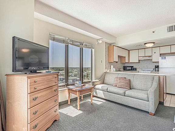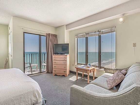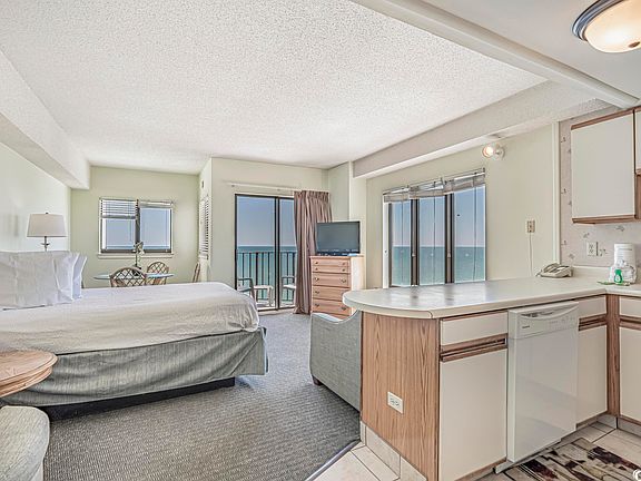 Looking for a beachfront escape or investment property? Look no further than this cozy efficiency oceanfront condo! Located in a prime location, this charming condo boasts stunning ocean views and all the amenities you need for a comfortable and relaxing stay. This unit is a renting machine!   Step inside and be greeted by a bright and airy living space, with large windows that offer panoramic views of the ocean. The efficient layout maximizes the use of space, with a comfortable living area, a fully equipped kitchen, and a dining table for four. This unit is an end unit providing more space and extra windows!  The sleeping area features a comfortable queen-sized bed, a large closet, and a flat-screen TV for your entertainment. The ensuite bathroom features a shower, and all the essentials you need to feel at home.  Step outside onto the private balcony, and take in the breathtaking ocean views, with plenty of space to sit and relax.  With access to all the amenities of the resort, including a swimming pool, fitness center, and 24-hour security, sauna, putting green, attached parking garage, this efficiency oceanfront condo is the perfect retreat for couples or solo travelers looking for a peaceful and relaxing getaway. Book your stay today and experience the ultimate in beachfront living or your next investment property!