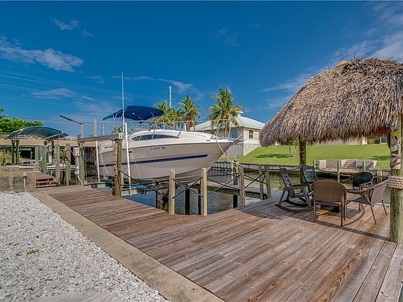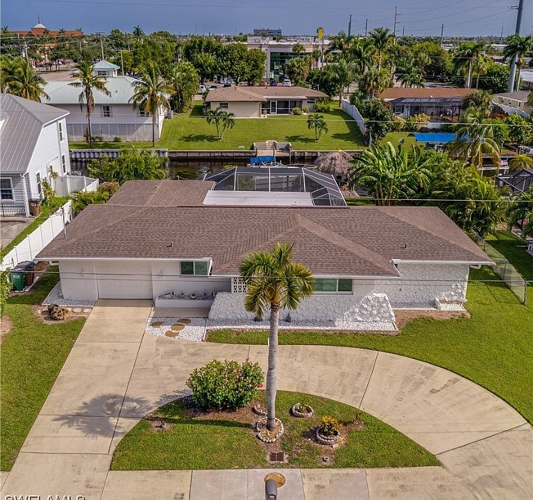 Enjoy waterfront living with this beautiful home, offering DIRECT GULF ACCESS with no bridges for quick access to open waters. This property features a HEATED POOL with a paver deck and new screens on the oversized lanai. The DOCK has new wood planks, a 10,000 lb BOAT LIFT, and a TIKI HUT! Inside, you'll find a spacious split floor plan with 2 large bedrooms plus a DEN, and tile flooring throughout. MASTER SUITE with a large walk-in closet, and recently updated modern BATHROOM with glass-walled shower & “smart” features. The KITCHEN features granite countertops, soft-close wood cabinets, a new fridge, a water filtration system at the sink, and a pass-through window to the lanai. Other recent updates include hurricane IMPACT WINDOWS & DOORS; ELECTRIC Pool Heater; a high-efficiency AC SYSTEM, which includes all new ductwork, runs, and returns; baseboards and blown-in insulation. The guest bath has a jetted tub, and easy access to the pool area. This home also features a whole house WATER FILTRATION SYSTEM, auto SPRINKLER system, fruit trees, a fire pit, and a recently painted exterior. SECURITY is enhanced with an ADT monitored system, and a separate Ring system with additional cameras. ROOF was replaced in 2019. NO flood insurance required. Perfect for year-round residence, a seasonal getaway, or an investment rental. Conveniently located near restaurants, bars, shopping, and all that Cape Coral has to offer. Don’t miss out on this slice of paradise!
