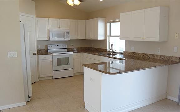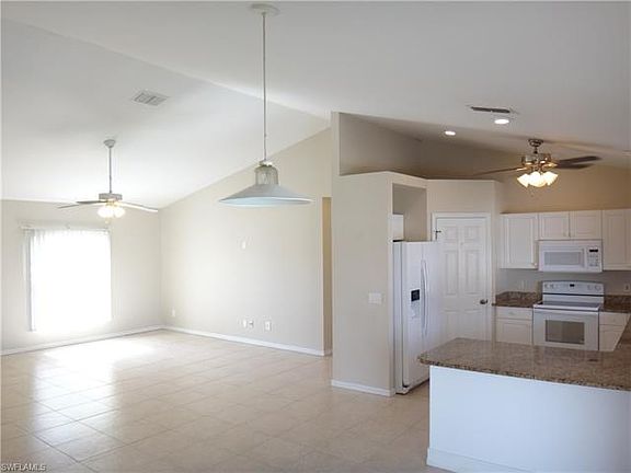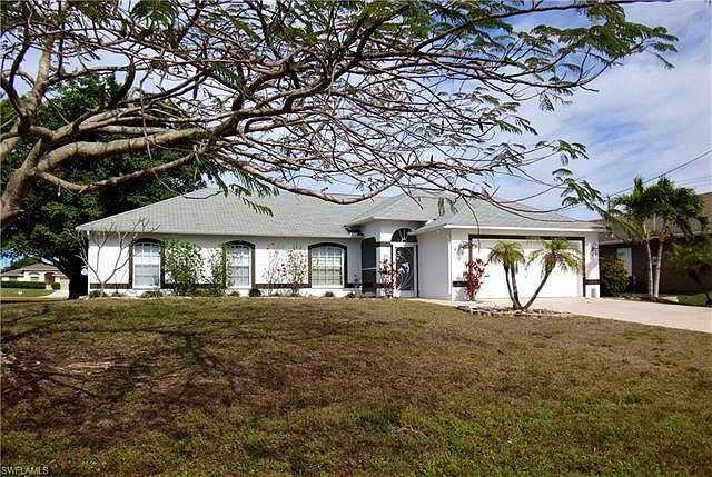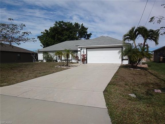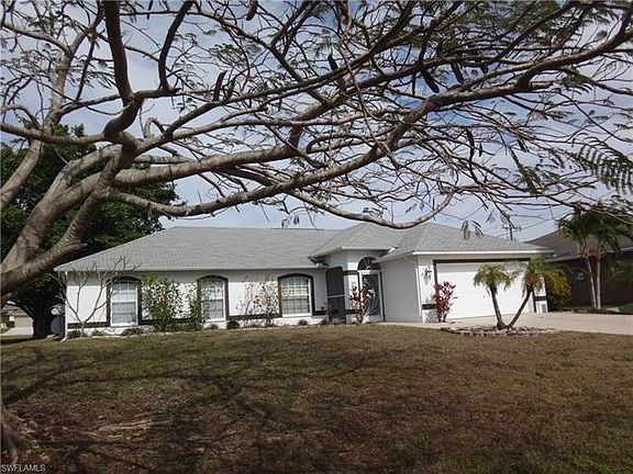 Great FOUR bedroom two bath POOL home in central Cape Coral. Easy access to shopping and Fort Myers/Veterans corridor. Clean and ready to move in, neutral colors. Open and bright with vaulted ceilings, and lots of storage space. Granite countertops and tiled throughout. Mature trees, really a cute home. Additional patio outside of screen enclosure in addition to large covered patio, and pool bath access. Easy to show and sell.