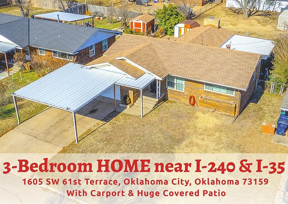 A CHARMING 3-BEDROOM HOME VERY NEAR I-40 & I-35!!! Nestled in SW Oklahoma City with great access to I-240 & I-35 and with its affordable price, blink and this home will be gone fast! Owner upgraded most major systems in the house when he moved -- home has NEWER HOT WATER TANK (2021 and upgraded to 40 gallon), NEWER FURNACE (with infrared system), NEWER A/C UNIT & ELECTRICAL SYSTEM is up to code! Home features 1-car attached garage and a 2 car carport. Living Room with wood-burning fireplace and naturally lighted with its huge windows on both sides, Kitchen with a nice breakfast nook, huge covered patio perfect for entertaining family and guest al-fresco style! Home is in close proximity to dining/restaurants along I-240, entertainment, medical facilities & hospitals, grocery and shopping areas! Don't miss out! Schedule your showing now!