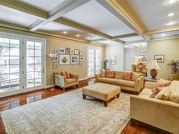One level cape cod cedar shingle custom home designed and built by the owner, architect on 4.09 acres. Exceptional quality and craftsmanship in the materials, workmanship and design with high ceilings with coffered accents, hardwood floors, tall and numerous French doors and windows inviting you to enjoy the fabulous outdoor living on a lushly landscaped level lot with 20 X 40 salt and heated pool, travertine patio and cabana with two storage areas within fencing. The views from the living room through the screened porch to the pool and cabana is inspirational. In addition, there is an attached garage with 4 bays and a detached garage with 2 bays, artist studio, professional greenhouse and walk up storage above the detached garage. The entry foyer is an ideal art gallery for your collection. The living room is huge and features a fireplace and built in bookcases with pool views and direct access to the screened porch to expand your entertaining space. The kitchen is gorgeous and is also quite large with a center island, inset linen white cabinets, granite countertops, Wolf gas range with pot filler faucet, Sub-Zero refrigerator, wine cooler and stainless apron sink. You'll love enjoying the garden and pool views in the breakfast bay area. An adjacent butler's pantry has built-in cabinets and countertops. The dining room faces the pool and connects to the living room. The primary suite is privately located at the other end of the house and features a luxury bath with granite double vanity, makeup area, bubble jetted tub, large separate ceramic tile shower and a private water closet. The library features a gas fireplace, bookcases and French doors overlooking the pool. It opens to the primary suite with a sliding custom door. A guest bedroom and full bath plus a laundry room complete the main level living. Automatic generator, central vacuum system, encapsulated crawl space are additional features. Convenient to Hermitage Country Club, Kinloch Golf Club, Deep Run Hunt Club and the area's preparatory schools.