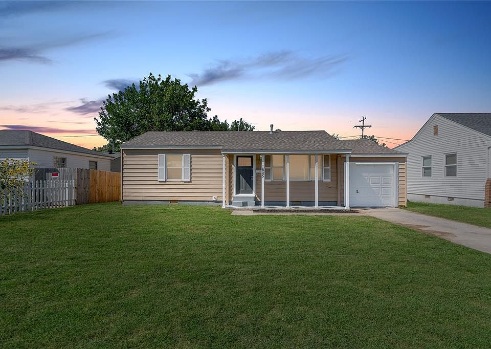 Experience modern living in this beautifully remodeled home conveniently located near Tinker Air Force Base. Step into the inviting kitchen featuring stylish tiled floors, complemented by tastefully painted cabinetry and gleaming stainless steel appliances. The seamless flow of hardwood floors throughout the rest of the home adds warmth and sophistication. Safety and practicality are paramount here, with a storm shelter for peace of mind during inclement weather. The backyard also boasts a handy storage shed, providing ample space to store your outdoor essentials. Don't miss the opportunity to make this upgraded gem your own!