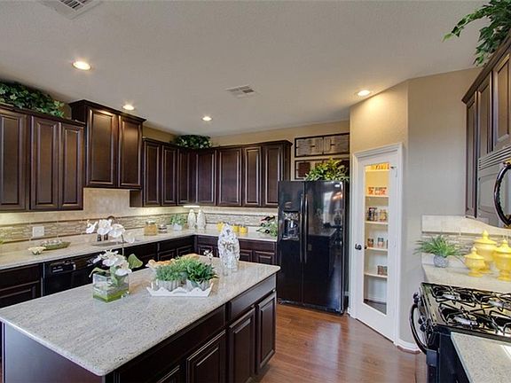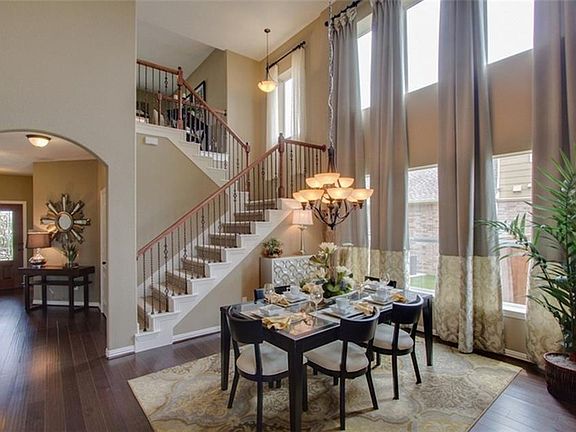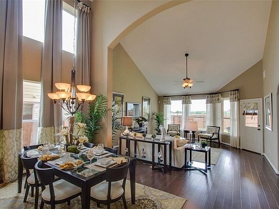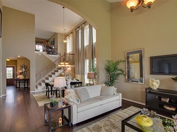The Silverthorne plan is for the family that wants it all! The first floor Master Suite has his and hers closets while the upstairs of this home boasts three secondary bedrooms, a Game Room and Media Room. The dramatic two story Dining Room ceiling and sloped Family room ceiling give this homes tons of character. This home also includes wood floors in the entry, dining room and family room. Fireplace with beautiful floor to ceiling travertine, the kitchen island and a covered patio.