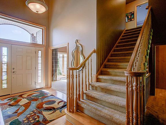 Come home to elegance in this high quality 4000+ sq/ft 5 bdrm custom built home! Striking 2-story great rm w/ a fireplace encircled by a wall of windows reaching the 18ft peak! Hardwood flrs grace the grand entry, formal dng & extend into the huge solid surface kitchen w/ access to a large patio overlooking the extensive 1/3 acre well landscaped lot w/ curb appeal-sprinkler system & pet fence! Spacious front living rm could also be a 1st flr office. 1st flr Master has a walkin 4x6 tiled shower & Oval Whirlpool! Walkout LL offers a big rec rm w/surround sound & 2nd f/p, new game rm addition w/wet bar, full bath, 5th bdrm+den! New roof-2011!