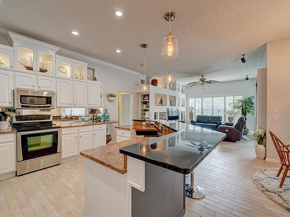 Beautifully renovated home in Heritage Springs 55+ golf community. Large master bedroom with private access to pool, double walk in closets and en suite. Luxurious master bath has upgraded tile, cabinets, granite counters and features a custom walk-in shower. The living room, dining room and family room have wood look tile, plantation shutters and crown molding throughout. Gourmet kitchen with plenty of cabinets and granite counter space overlooks the breakfast nook, family room and pool. The home also features two additional amply sized bedrooms with built-in shelving and a guest bath that rivals many master baths. And the view of the water from the pool with spa and large covered lanai is perfect for lazy day relaxing. A custom pool bath is also a unique feature of this home. Make this dream home yours!