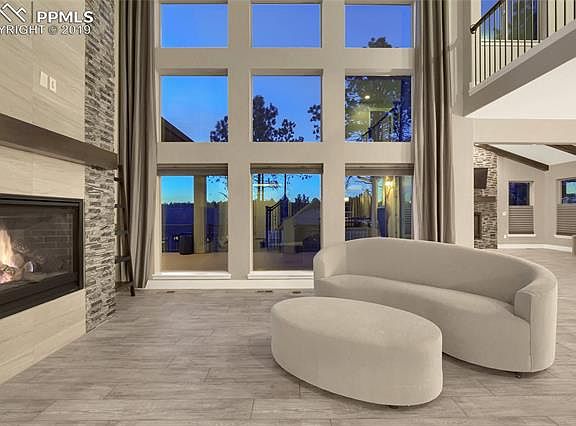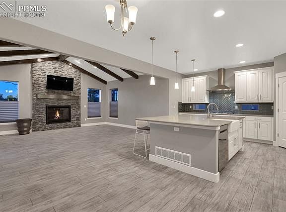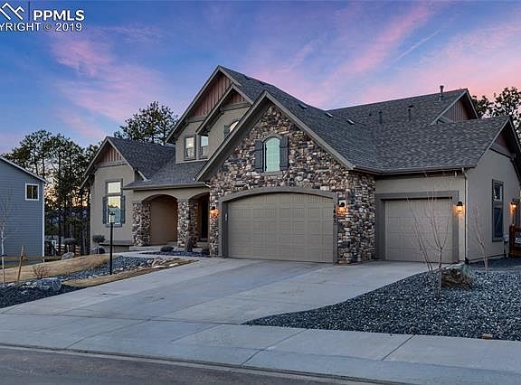 Looking for new and do not have time to build? Here is an incredible home that is move in ready with all the upgrades you would select. The main level has beautiful modern Coretec flooring throughout to include the master bedroom. In the kitchen you will find quartz counter tops, an apron sink, stainless steel appliances with separate gas cook top, glass tile backsplash, a large functional island that easily sits four, quality cabinetry with crown molding & soft close action, a pantry, and is the perfect place to gather. The family room includes vaulted ceilings with wood beam details, a gas fireplace, floor to ceiling tile detail, and walks out to the massive 34'x 16' low maintenance deck for easy bbq access. The master bedroom will easily accommodate the largest of bedroom furniture sets and has a private spa like bathroom that includes a spacious shower with frameless glass, a soaking tub, 2 walk in closets, dual vanities with quartz counter tops, gorgeous tile work, and a separate water closet with addition cabinetry. Step outside from the master bedroom to a covered section of the deck that is a perfect place to watch the sun go down and enjoy views of the mountains and Pikes Peak. The living room is generously sized and has an impressive fireplace with tile detail that reaches the ceiling. A striking series of windows line the wall on the north side of this room. On the upper level you will find a spacious loft, plush patterned carpet, 2 additional bedrooms, and 2 more bathrooms. This home was tastefully upgraded, wired for sound & security, has hand troweled texture throughout, and is sure to impress. The home is located located in a treed community minutes away from shopping and quick access to the Interstate. Set your private showing today!