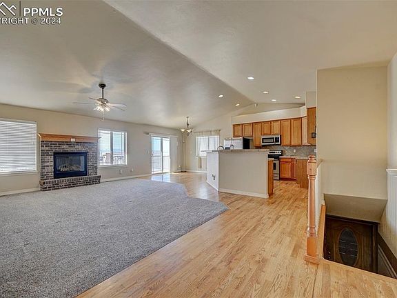 Enjoy The Breathtaking Pikes Peak Mountain Views That Living In Colorado Offers. An Amazing Escape From The City And A Hectic Work Life, This Welcoming Home Has Much To Offer In Terms Of Relaxation And Tranquility.The Well Appointed Kitchen Has Stainless Steel Appliances, 42" Upper Cabinets, Lots Of Cabinet And Counter Space, Island Seating, Pantry And Dining Nook That Opens To Deck Area. A Separate Dining Room Is An Inviting Space To Enjoy All Your Special Occasions With Loved Ones. During the Winter Months, You Can Get Cozy In The Living Room And Enjoy the Warmth Of The Fireplace. In The Mornings You Can Wake Up To Tranquil Mountain Views On The Main Level Which Hosts The Master Bedroom Suite That Sports A Luxurious Ensuite Bath With Soaking Tub, Dual Sinks And A Walk In Closet. A Secondary Bedroom, Linen Closet, Hall Bath And Main Level Laundry Are Some Of The Awesome Conveniences Of This Desirable Floor-Plan. A Huge Rec Room With Bar Area Is A Great Place To Hang Out With Friends And Family And Enjoy A Glass Of Your Favorite Beverage Or Could Be Used As A Kitchenette With Plenty Of Space For Billiards Table Or Dining Table, TV Area And More. Three Sizeable Bedrooms With Garden Level Windows And A 3/4 Bath, Plus A Large Utility Room Completes This Wonderful Walk-Out Basement That Opens To A 26 x 10 Patio. Exterior Features Include A New Roof, Low Maintenance 25 x 11 Composite Deck, Concrete Patio, Stucco Exterior, Fenced Back Yard, And Peaceful Mountain Views. Other Value Added Upgrades Include: Solar Panels, Reverse Osmosis Drinking Water In Kitchen, Water Softener And NEWER Central Air. Minutes From Schriever Air Force Base, A Short Drive To Peterson Air Force Base And Ft. Carson And Easy Access To Colorado Springs Airport And Powers Corridor. Act Now To Own This Amazing Home Before It’s Gone!!!!